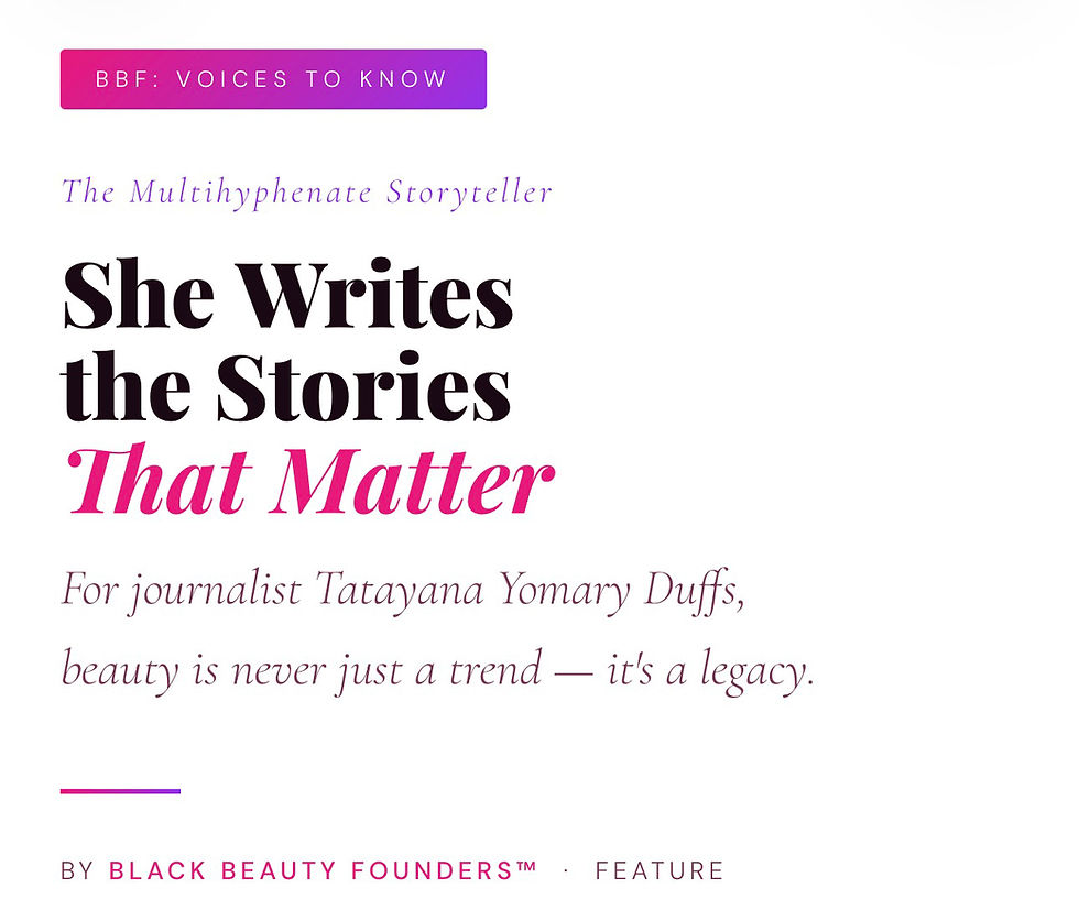 For Black Beauty Founders, Tatayana Yomary Duffs is exactly the kind of voice this industry needs more of: rigorous, intentional, and deeply, unapologetically committed to the culture. She saw the gap. She stepped into it. And she's been filling it with purpose ever since.